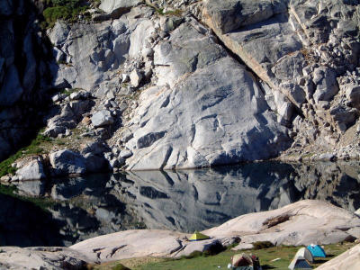 Lake Silliman (10049ft) has limited, but very good camping, we shared the only large flat spot with a family of 5 (a father and 4 boys that later joined us in the climb). There are additional flat spots that can accommodate a single small tent or a bivy.